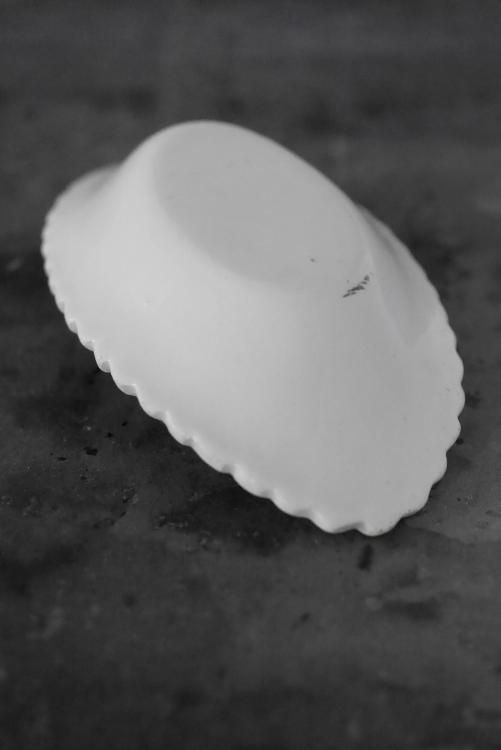 小さいながら凝ったフォルムで、繊細なラインが施され、リムまで凹凸が残っています。