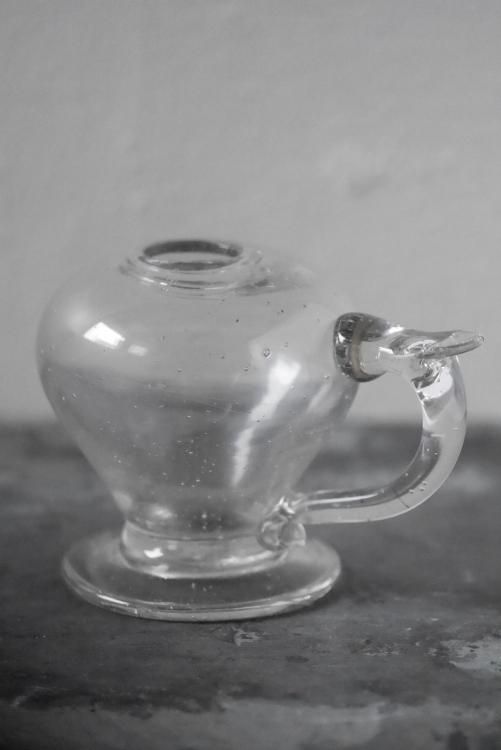 18世紀に作られたオイルランプベース、本来は口の部分に芯と、芯を支えるパーツが付いていていますが、