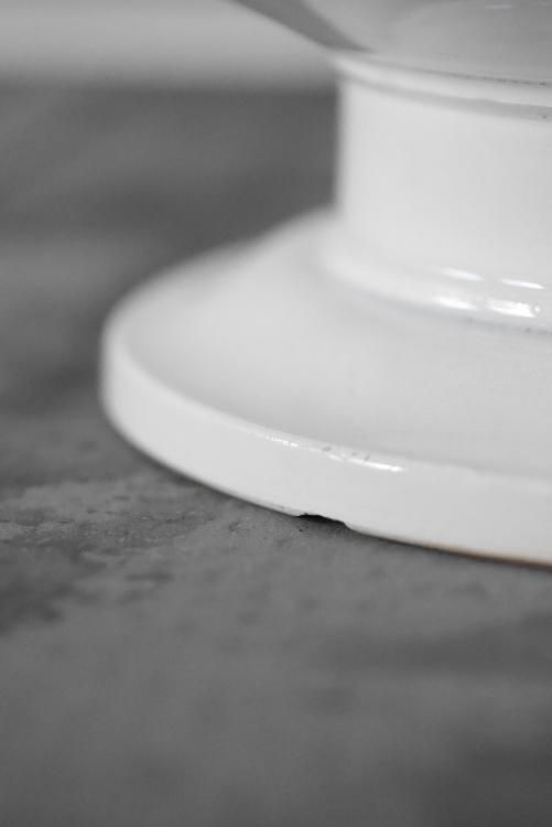 ハンドルのフォルムがあまり見かけないもので、高台と本体の間のくびれがしっかりとあるタイプです。