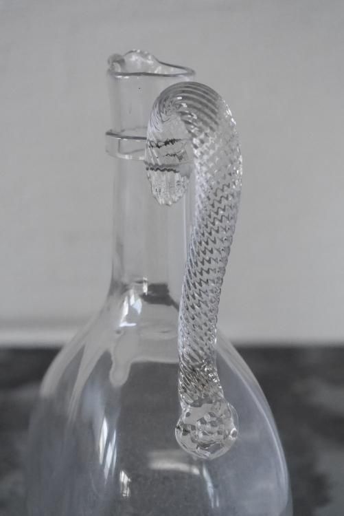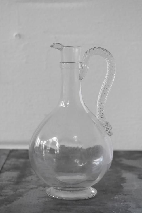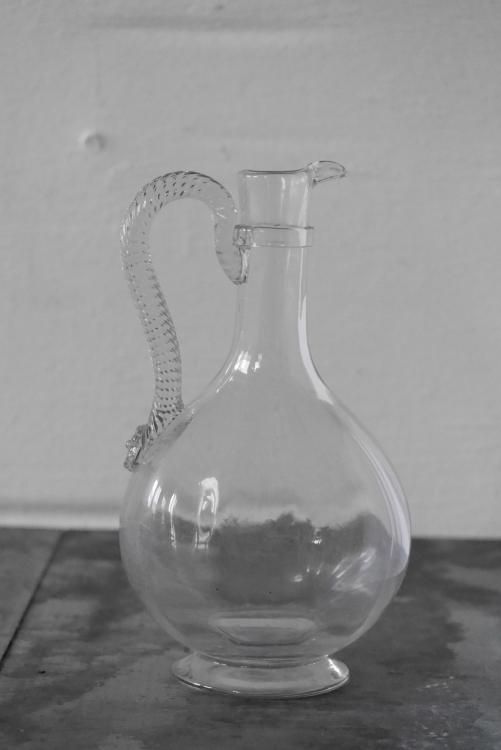 19世紀初頭頃に作られたと思われるカラフェ、ハンドルの装飾が美しいお品物です。