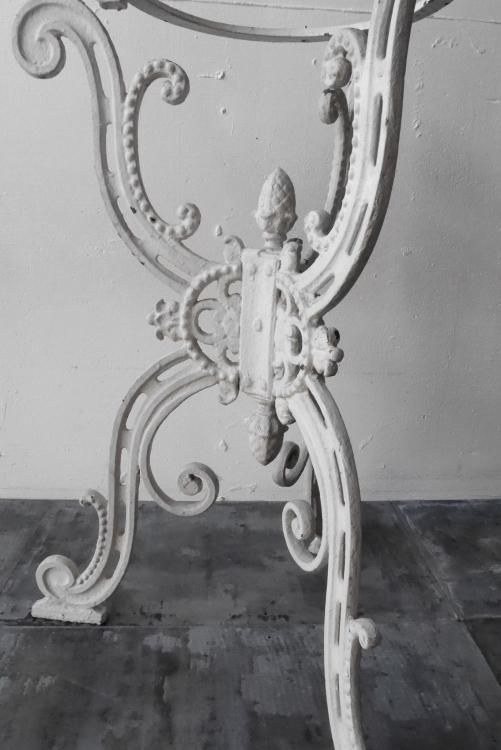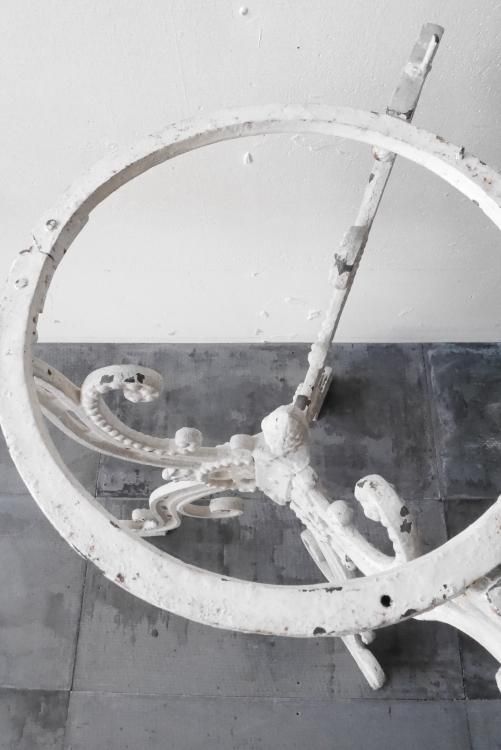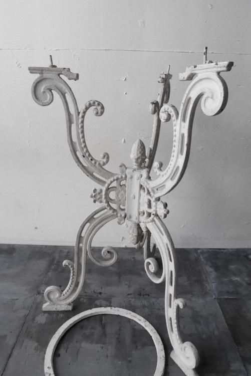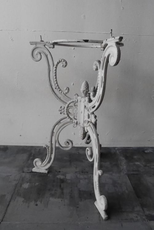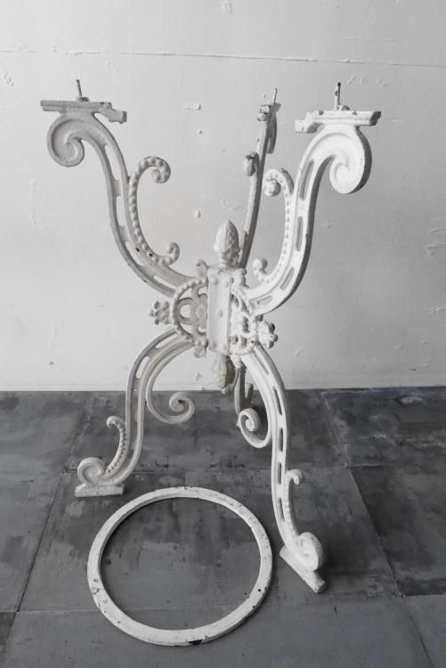 小ぶりなラウンドテーブルの脚部、現況では天板は付属しておりません。