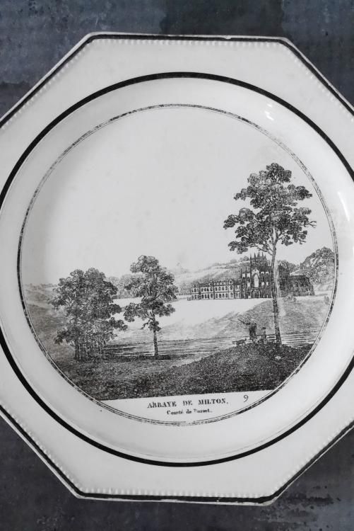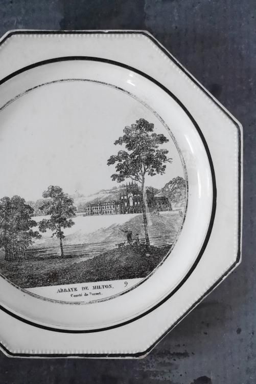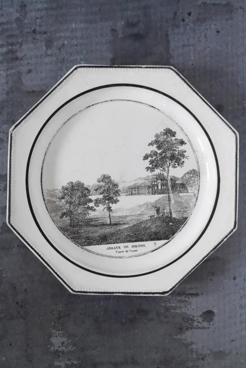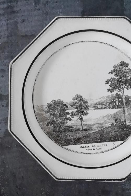 Choisy le Roi のグリザイユ、オクトゴナルプレートで1810~1830年頃に作られたお品物です。