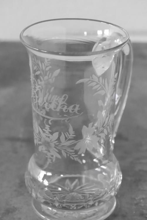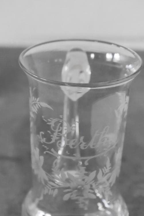 Bertha と名前が刻まれたグラス、お祝いや記念に贈られたお品物ではないかと思われます。