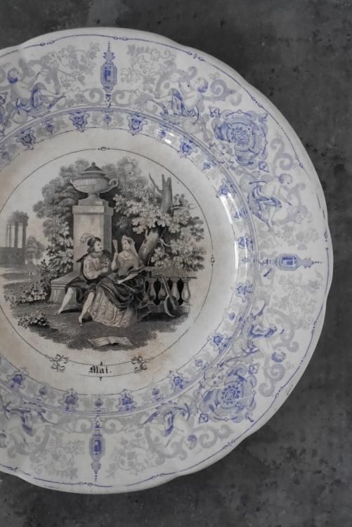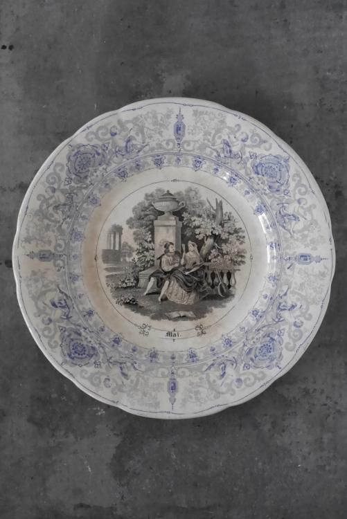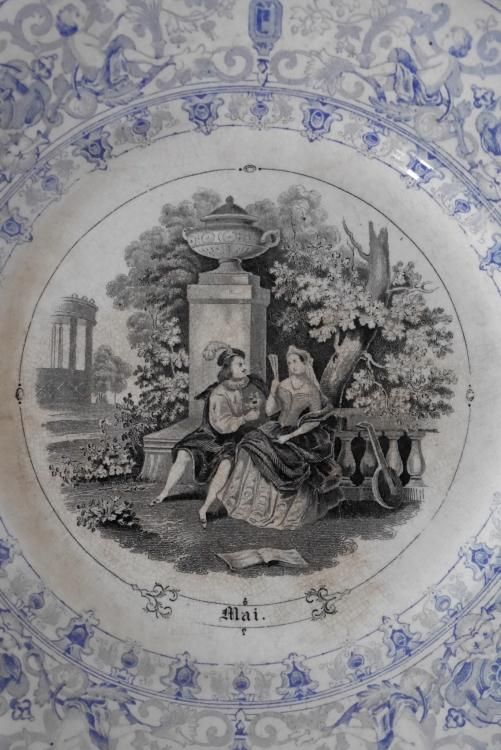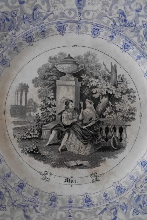 プレート内部はブルジョワジーの12ヶ月の様子が描かれたシリーズのようで、
