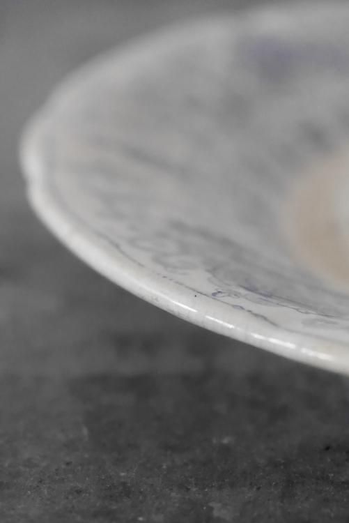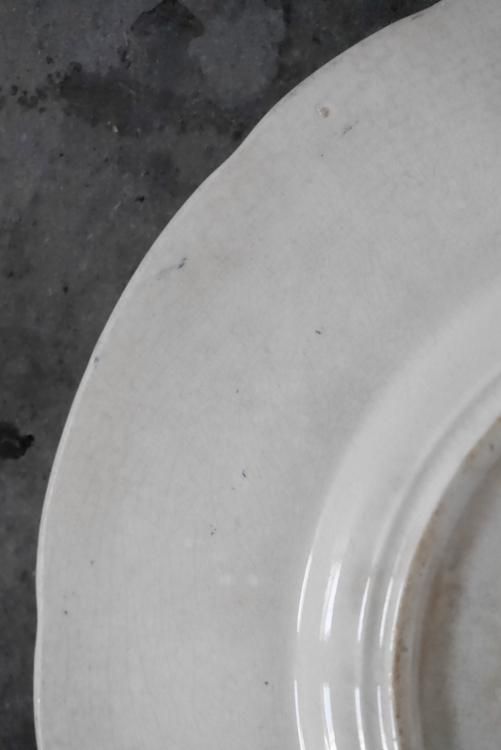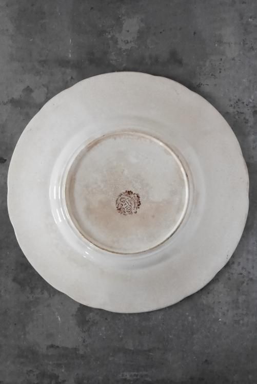 ラピスブルーのリム装飾が印象的なラウンドプレート、19世紀後半頃のSarregueminesのお品物です。