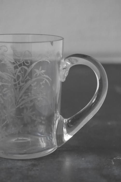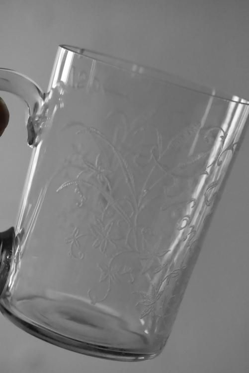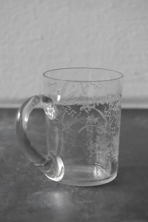 ハンドル付きのグラスカップ、温泉療養の飲料用として使われたお品物です。