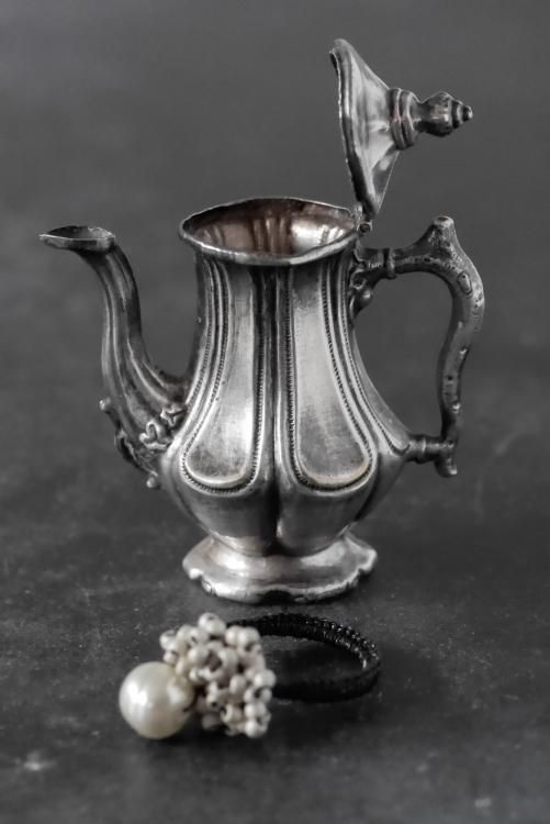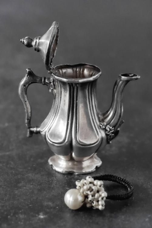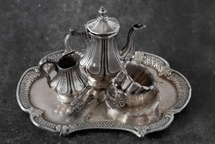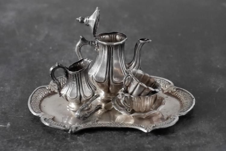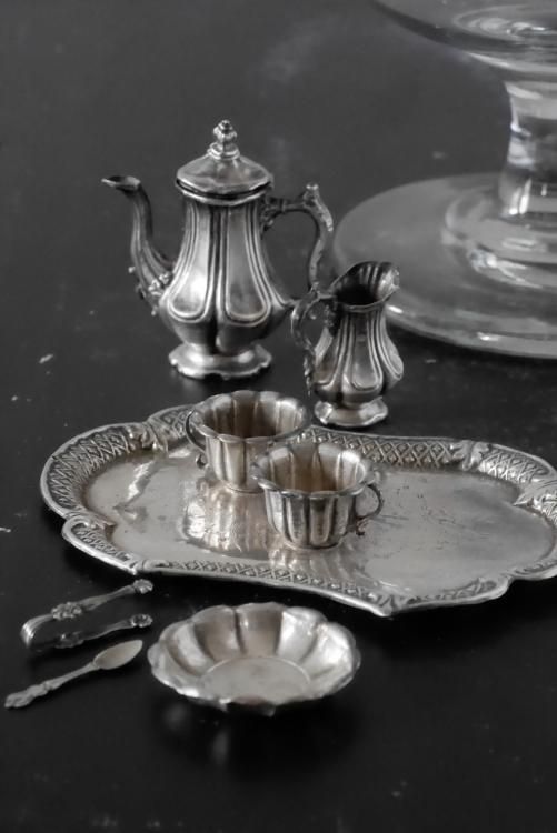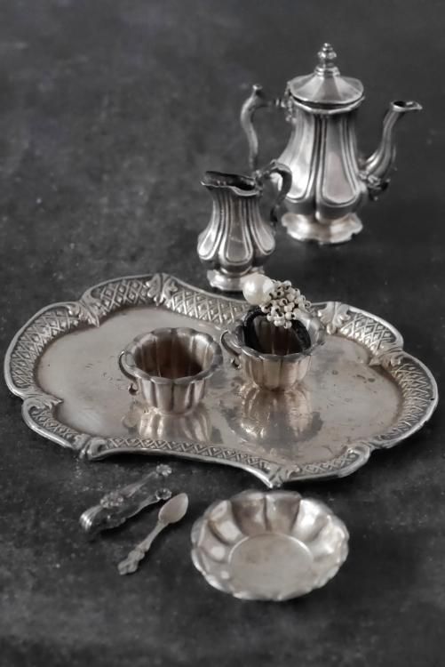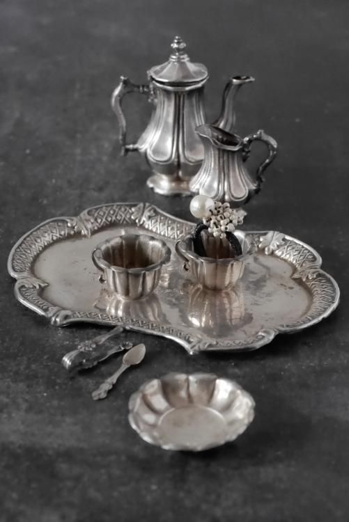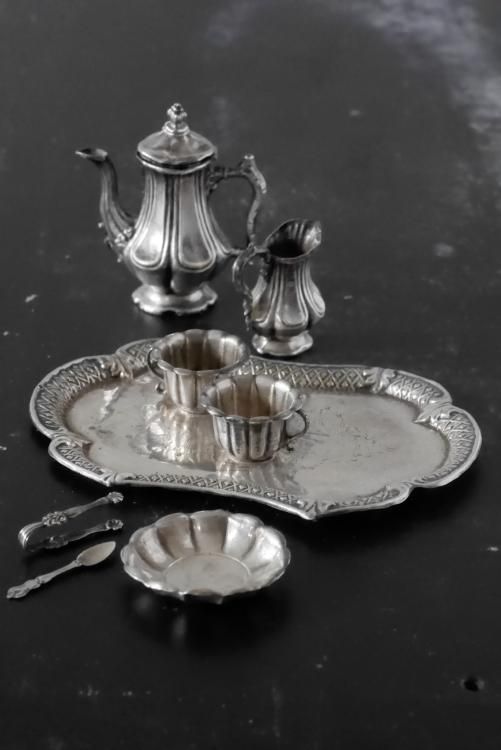 ミニチュアサイズ、ドールハウス用のティーセット、計8点のアイテムのセット販売となります。