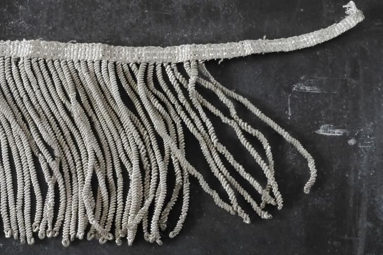 かなり使用感のあるフリンジ、房が外れてしまっている箇所も多く、枯れた風合いのお品物です。
