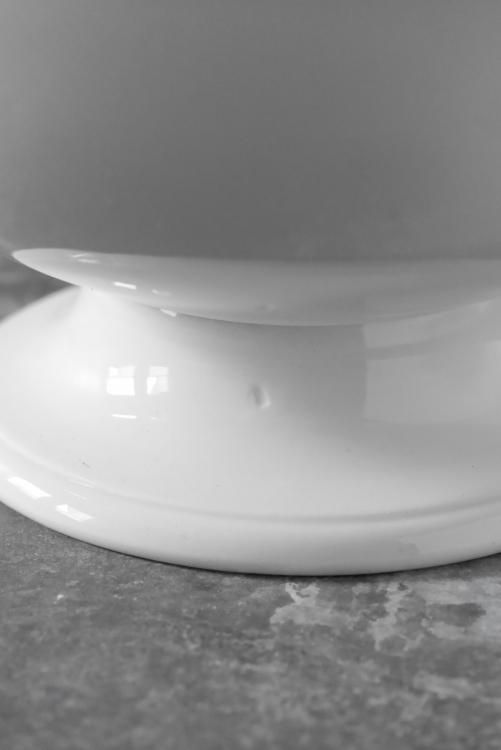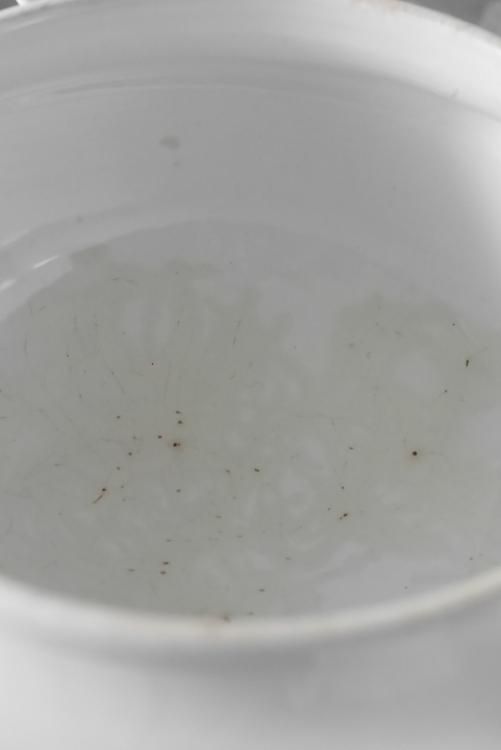 フタ側面に1箇所小さな欠けがある点と、本体内部にシミ、色付きが見受けられます。