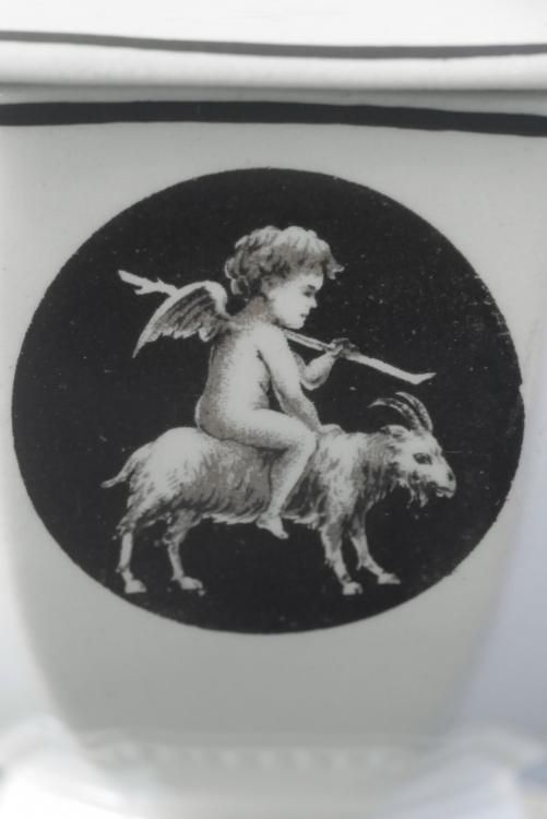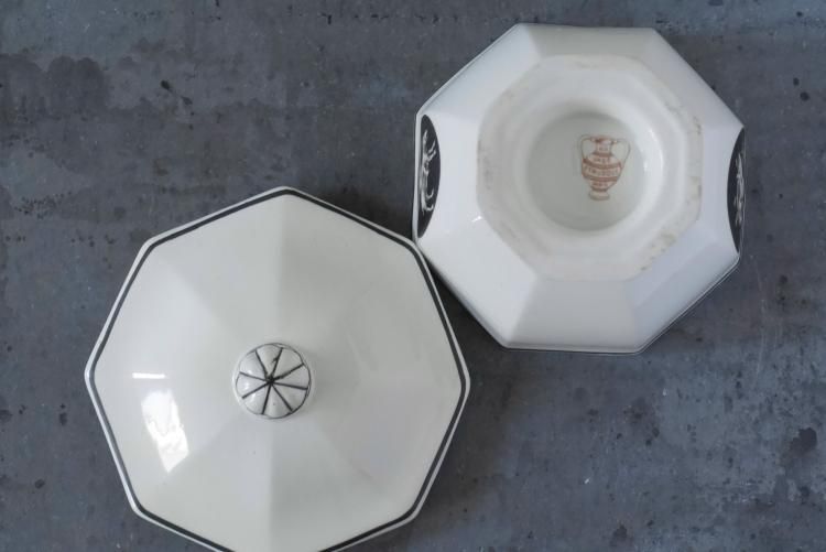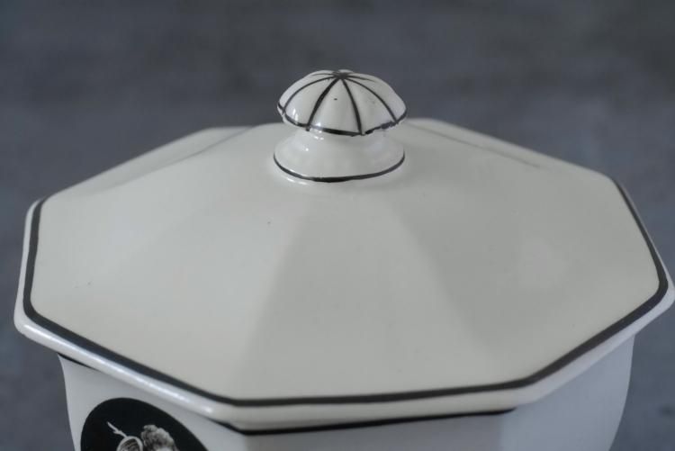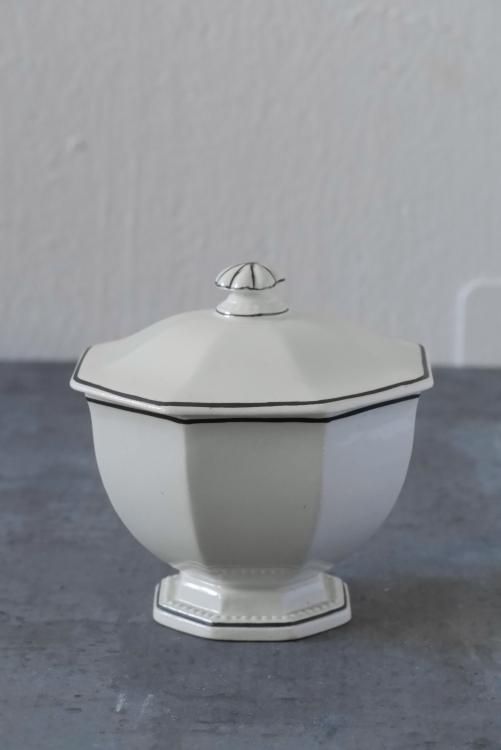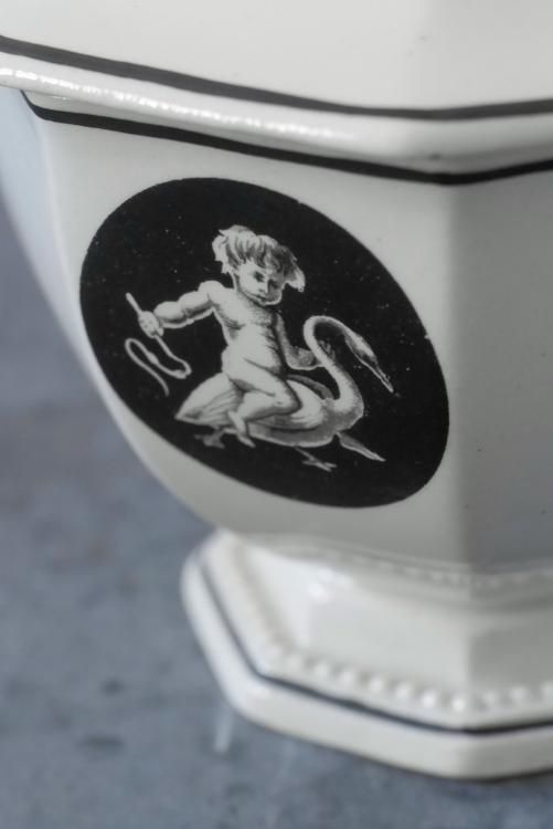 Angesの絵柄が素敵なフタ付きポット、フォルムも珍しいオクトゴナル型です。