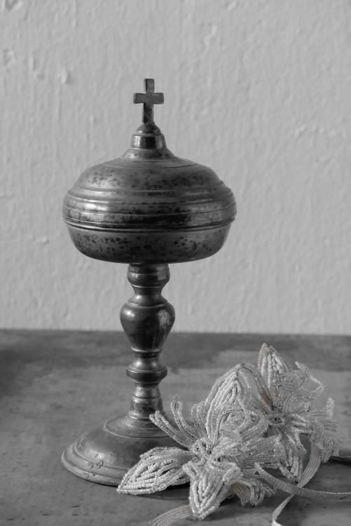18世紀末〜19世紀初頭頃に作られた聖体容器、ピューター製の珍しいお品物です。