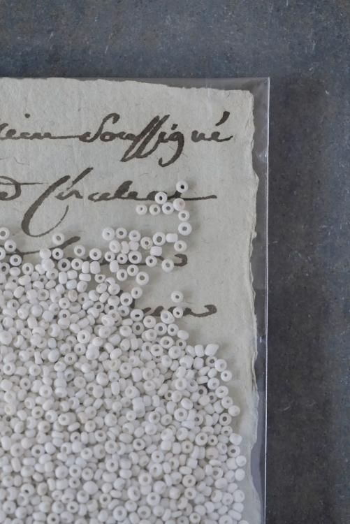 こちらは、今回入荷の白ビーズ3種類の中でも、1番粒が小さめ、シードビーズタイプとなっており、