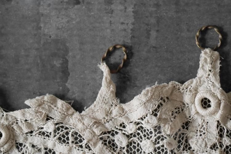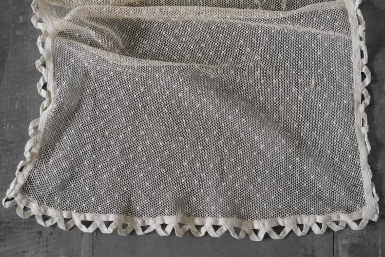 ドット柄のチュールレースと、上部のレースが素敵なカフェカーテン、