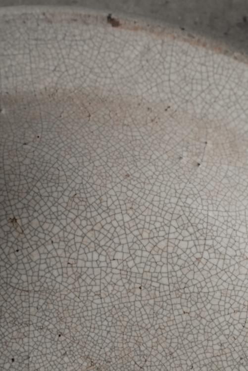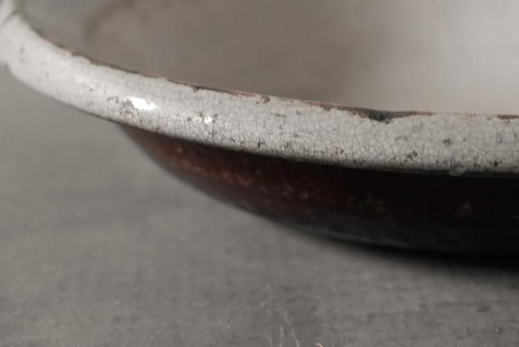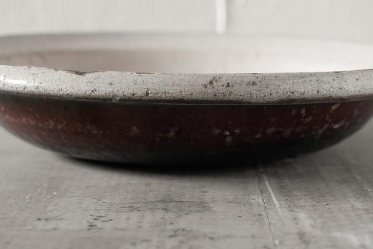 Cul noirの深皿、細かな無数の貫入や、リムに数多く見られる、古く黒ずんだ欠け跡にも魅了されてしまいます。