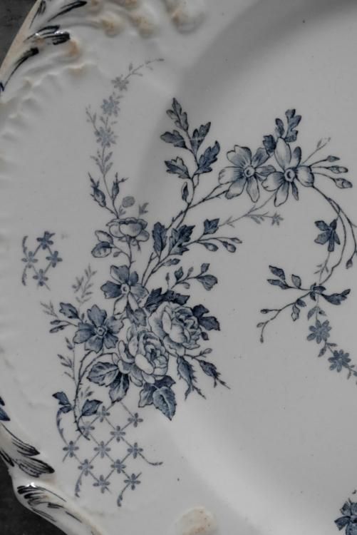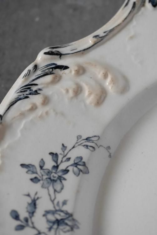 19世紀後半頃に作られたGien社製のプレート、美しいフォルムとエンボスの素地装飾、