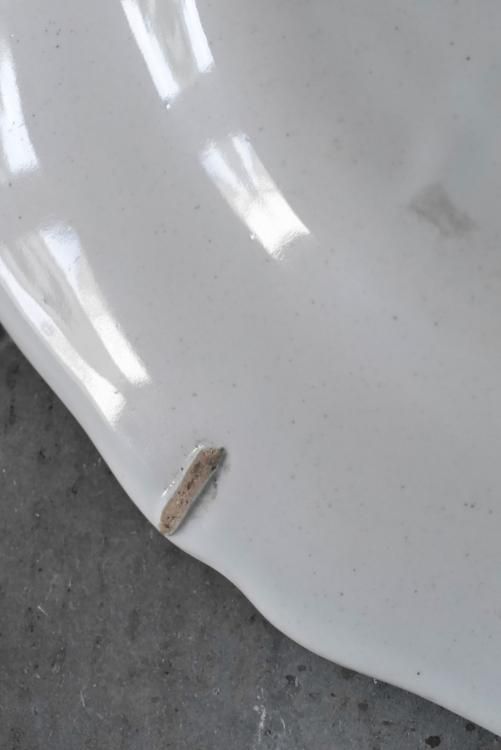 強いて言えば、釉薬全体に砂粒状の黒っぽい混入物が見える点と、リムに1箇所、小さな釉薬欠けがございます。