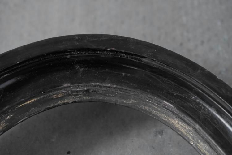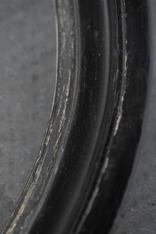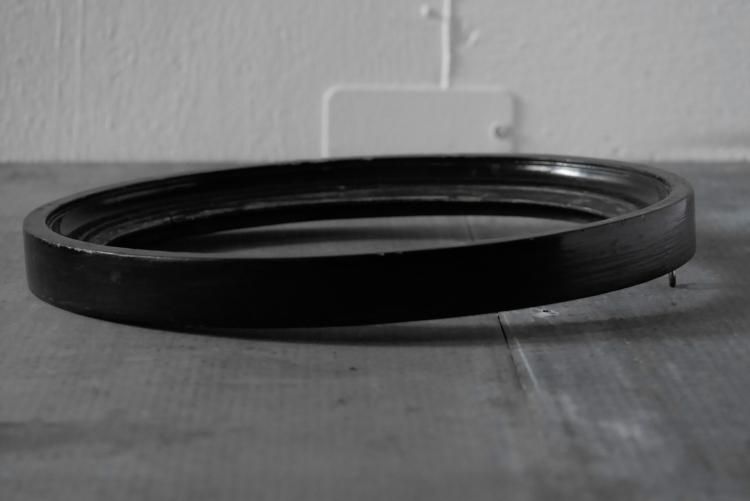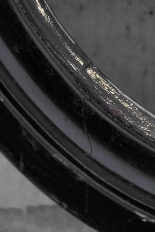 黒ペイントの枠の内側に、うっすらと掠れたゴールドのフチが残るオーバルフレーム、