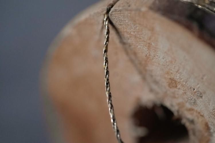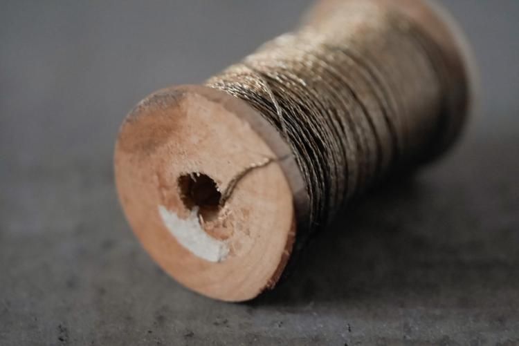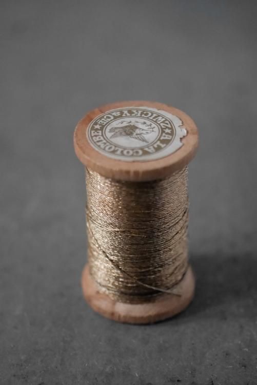 金糸の巻かれた糸巻き、3本撚りの金糸(ベースはシルク糸)が巻かれています。