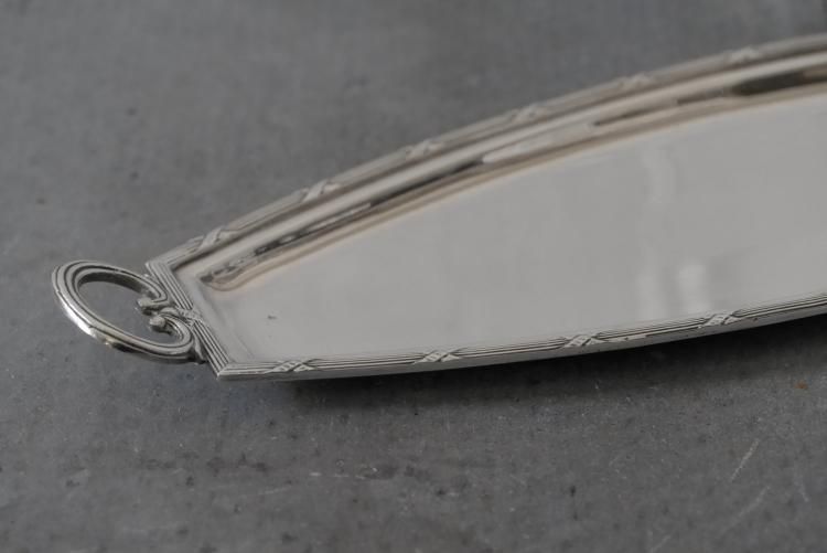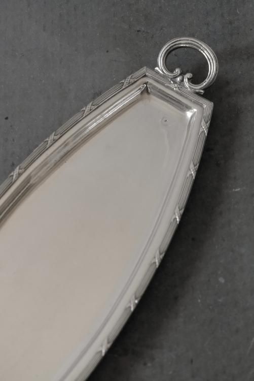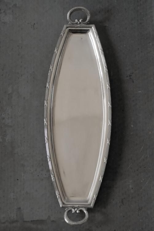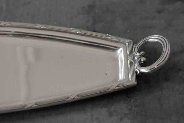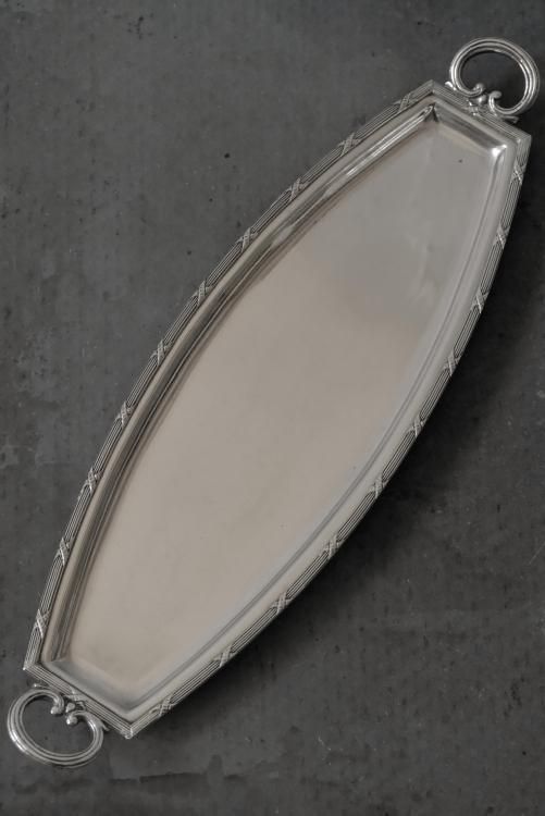 細長いオーバル型、カーヴの付いた変形長方形?のトレイです。似たフォルムのお品物が3点ございますが、