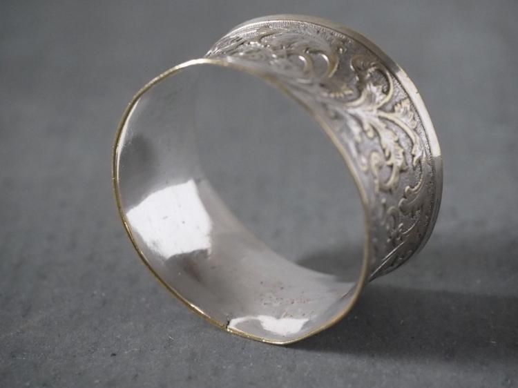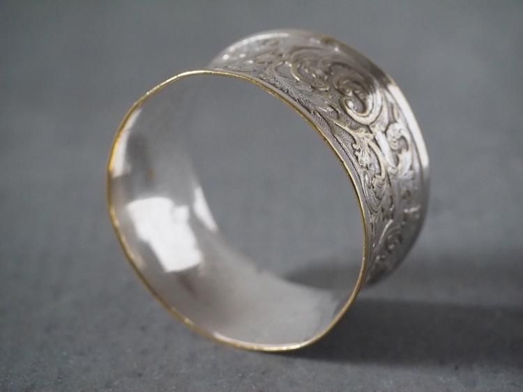 レリーフの大変美しいナプキンリング、元々はシルバープレート(銀メッキ加工)のお品物ですが、