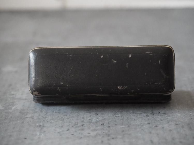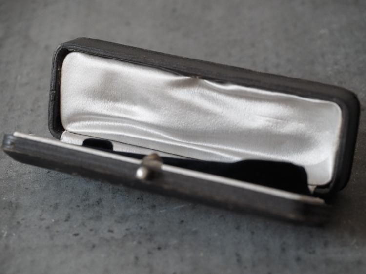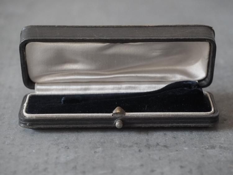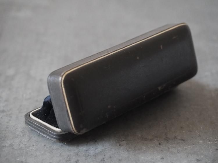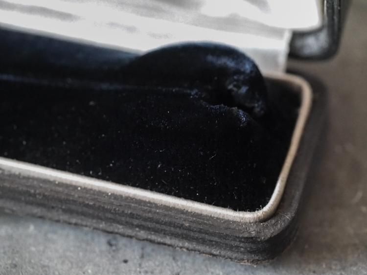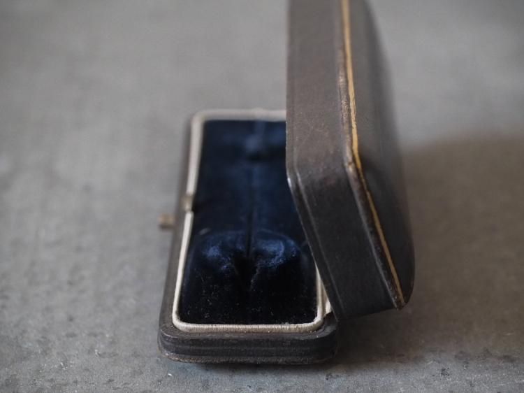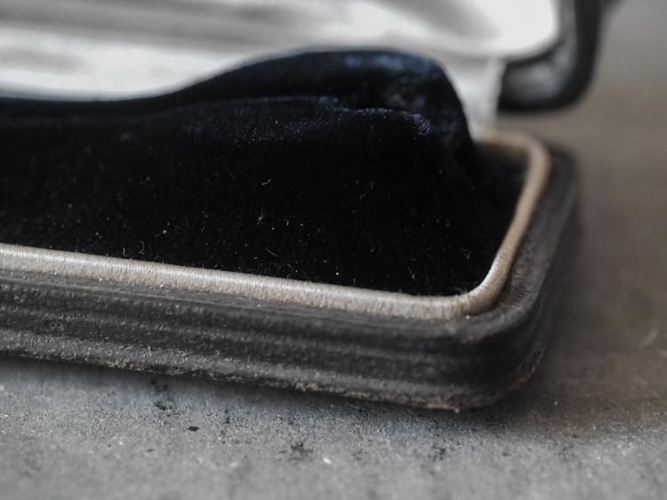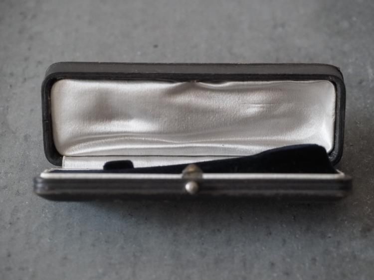 ピンブローチ用のレクタングル型ケースです。中蓋はライトグレーのシルク地で