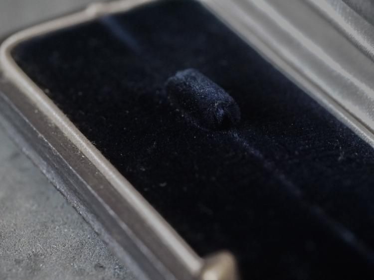 さらに宝石などの立体が収まるくぼみがございます。色合いはダークネイビーです。