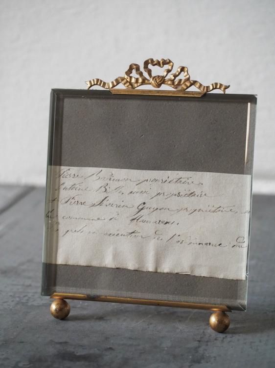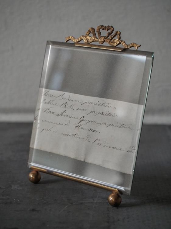 冠のリボンモチーフが美しいオルモルフレーム、入荷後にマニュスクリをコラージュしたお品物です。