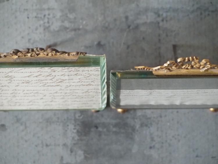 (立てた際の傾き具合や、モチーフの色合い等に多少の差があり、こちらのお品の方が、ガラス厚が薄めです)