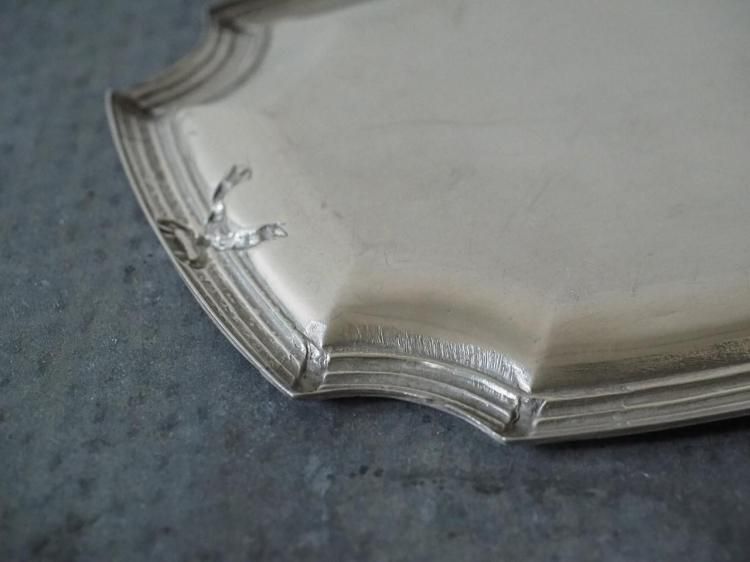 一部メッキが剥がれて素地の合金が露出しており、素地の錆で黒ずんだスポットが見受けられます。