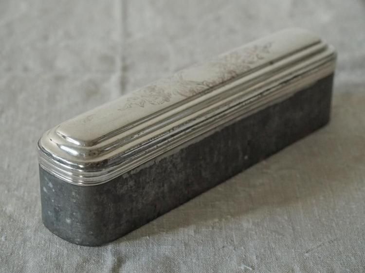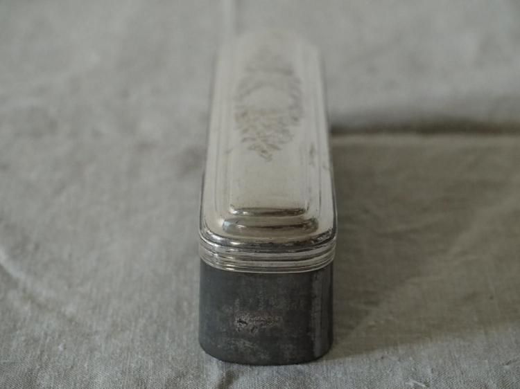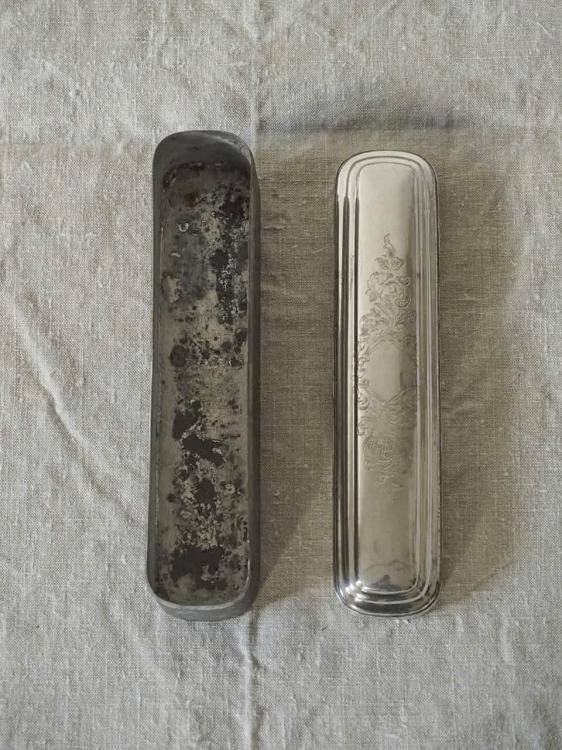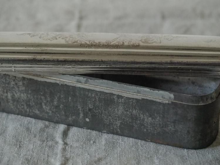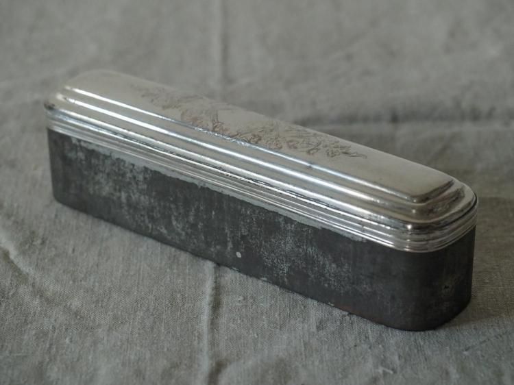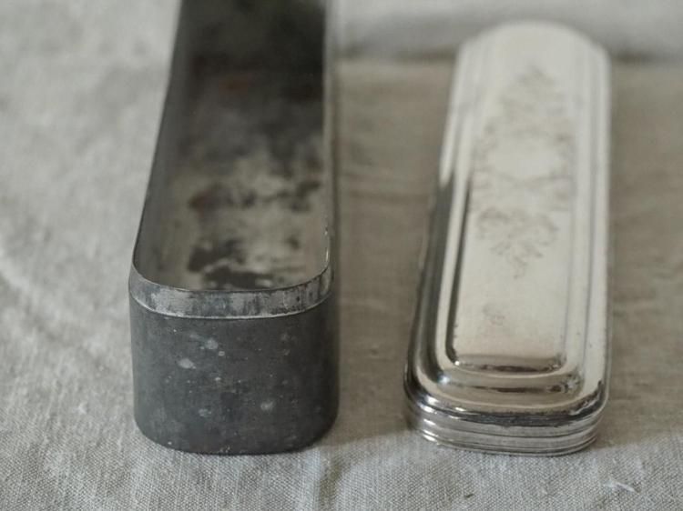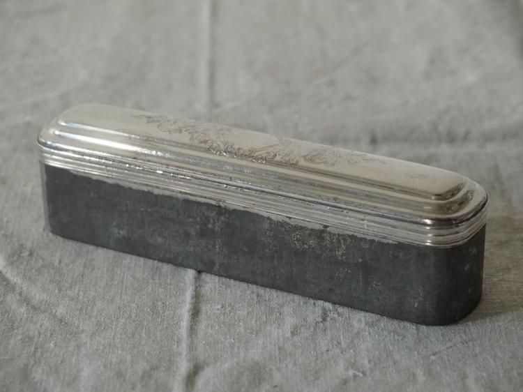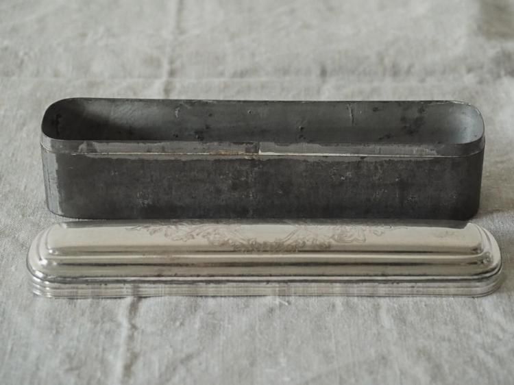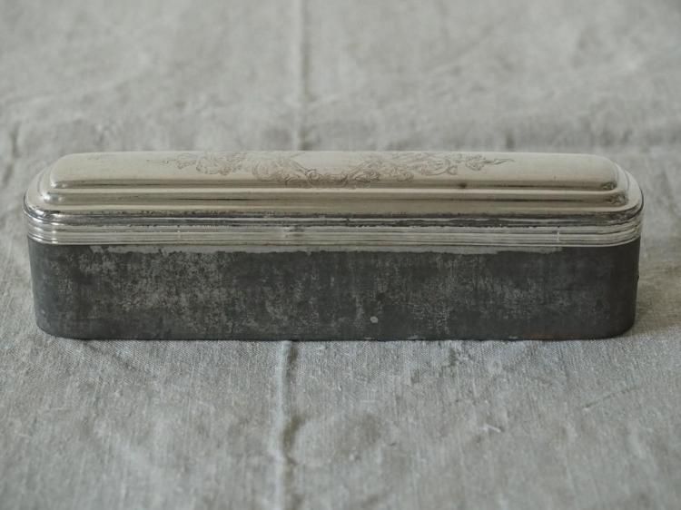 ブリキ製の本体にクロムメッキ製のフタの付いたケースになります。