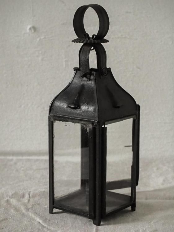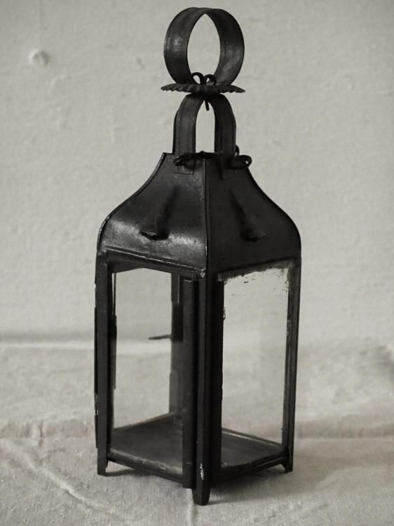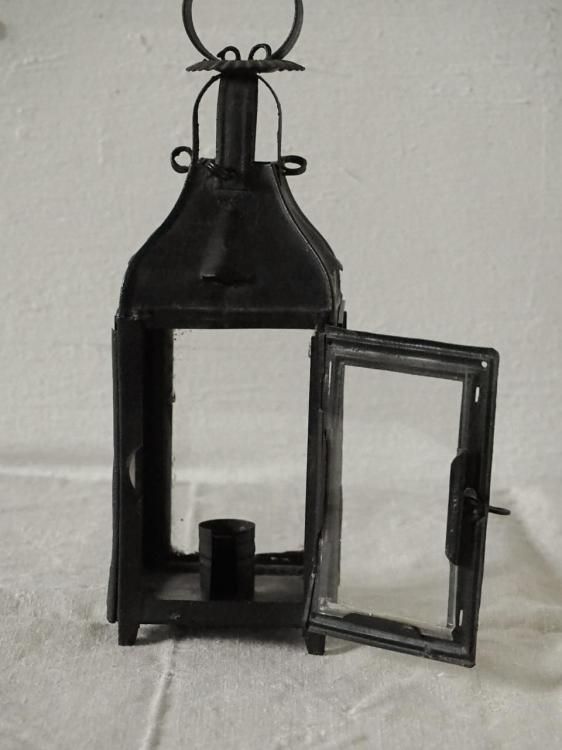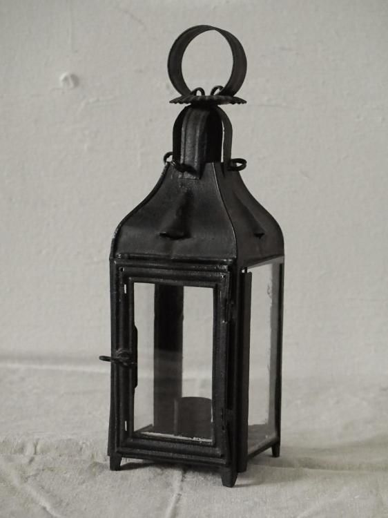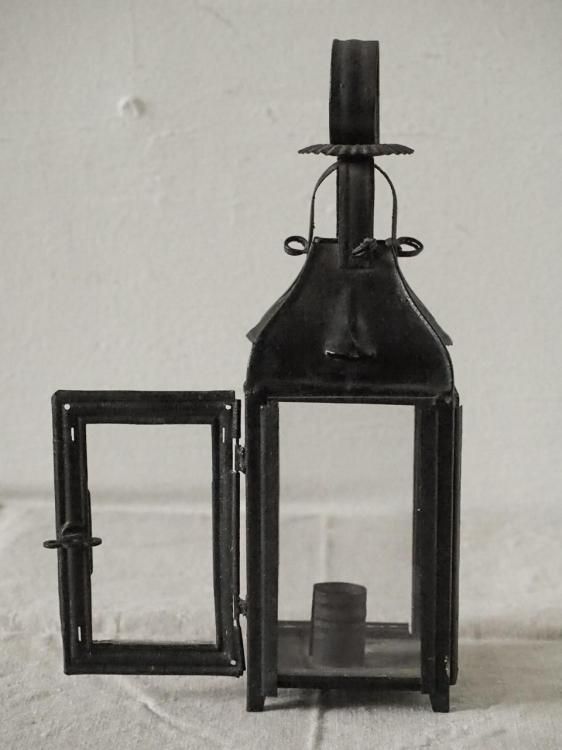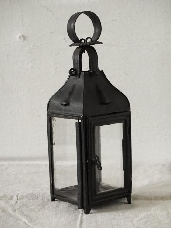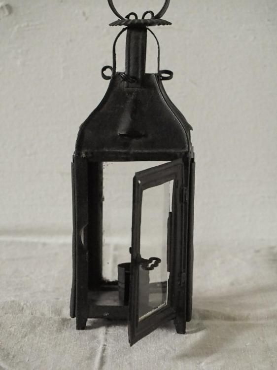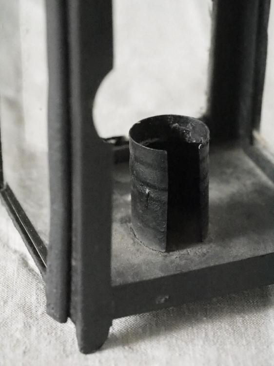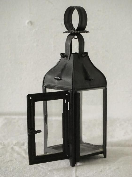 ブリキ製に黒ペイントが施されたキャンドル用のランタンです。