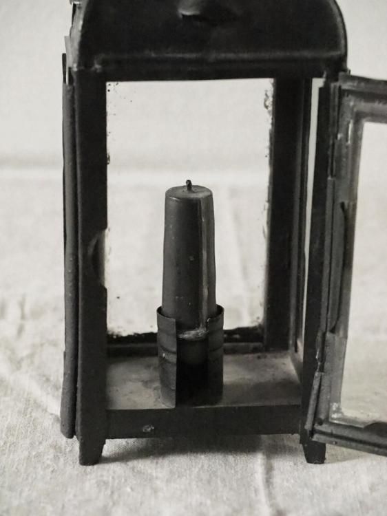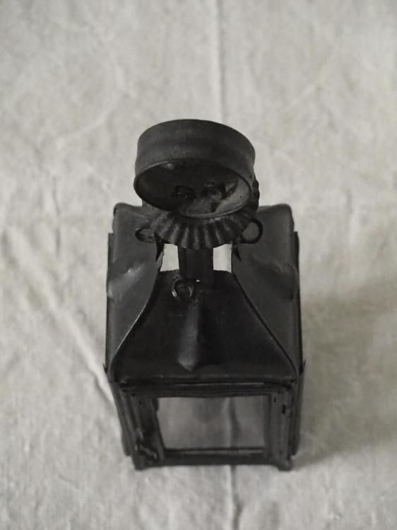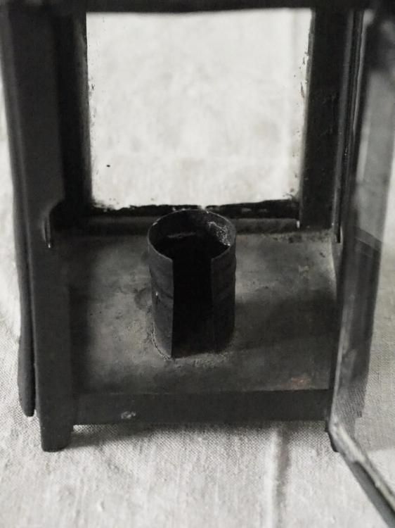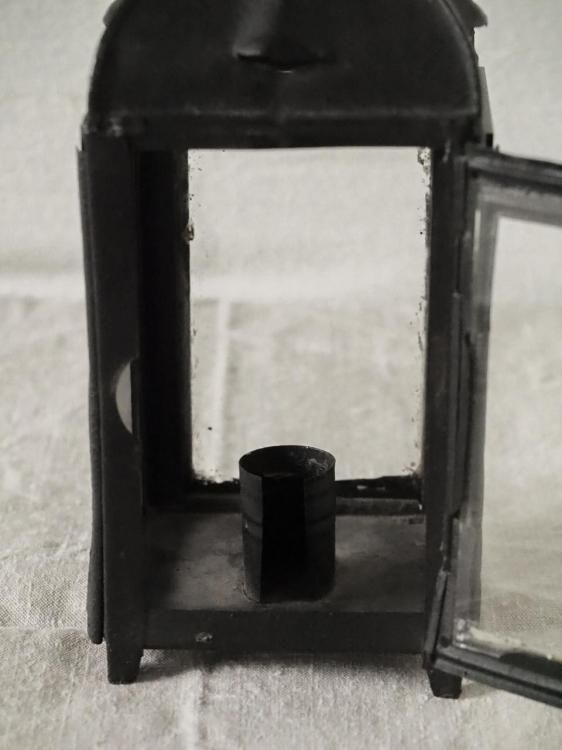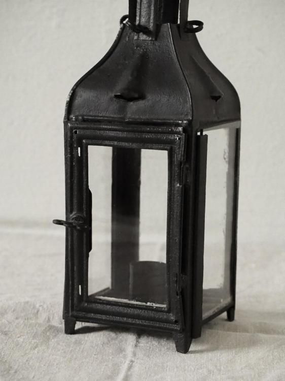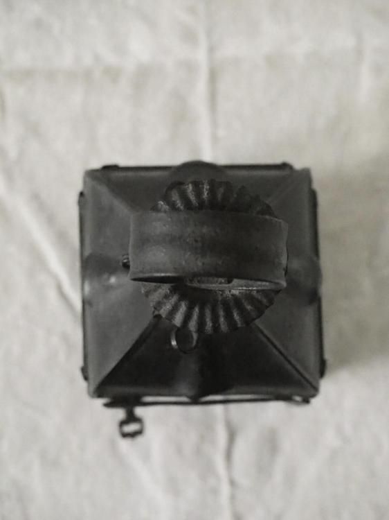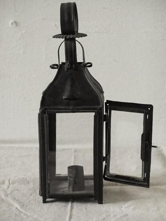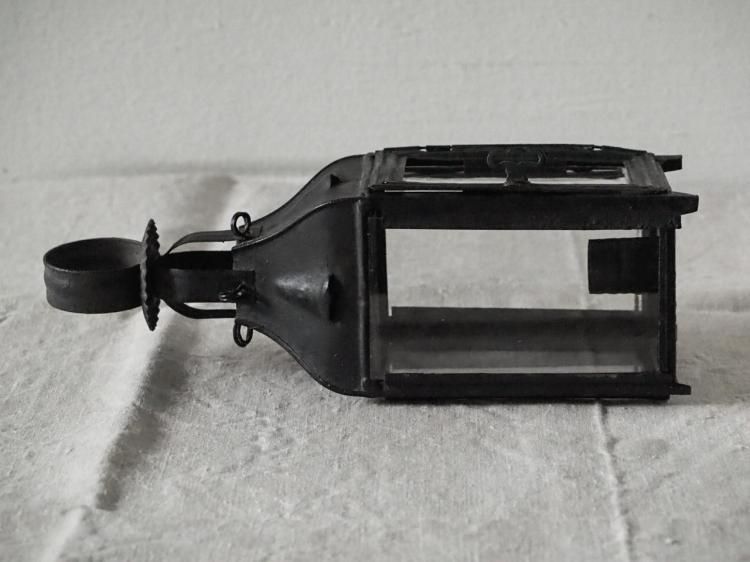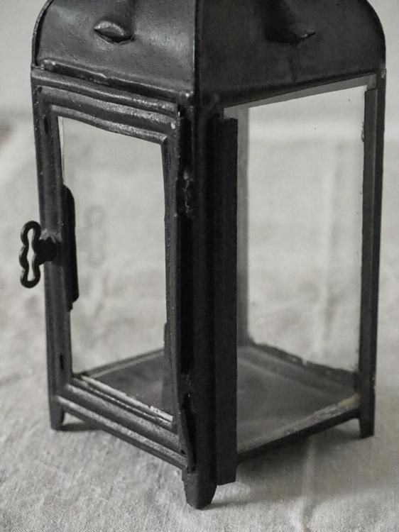 ブリキ製に黒ペイントが施されたキャンドル用のランタンです。