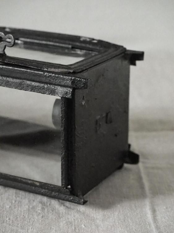 4面にガラス板が入り、前扉が開閉します。約20mmほどの太さのキャンドルを差し込めるスタンドが付いており、