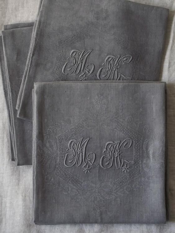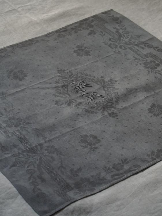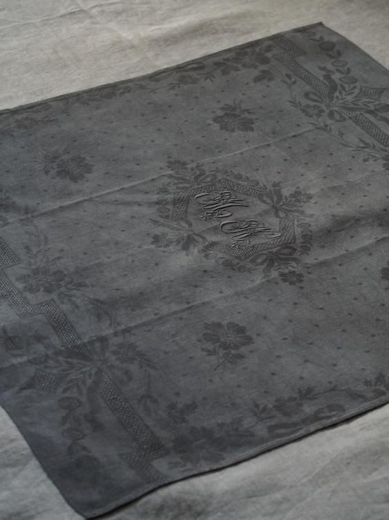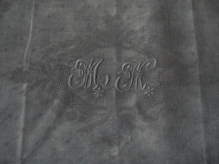 MとNのイニシャル刺繍が生地中央に施されたservietteです。