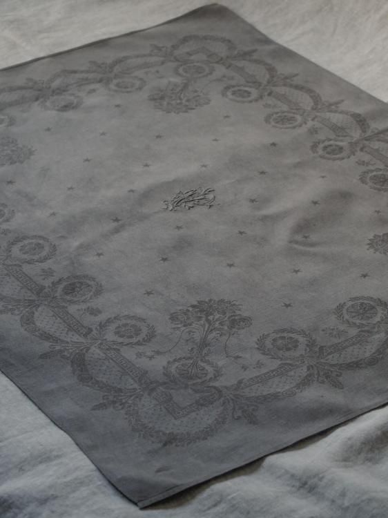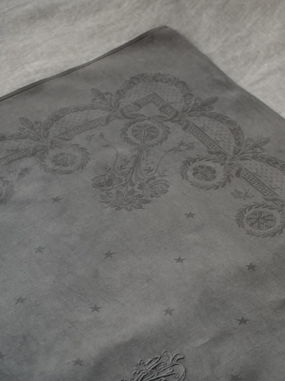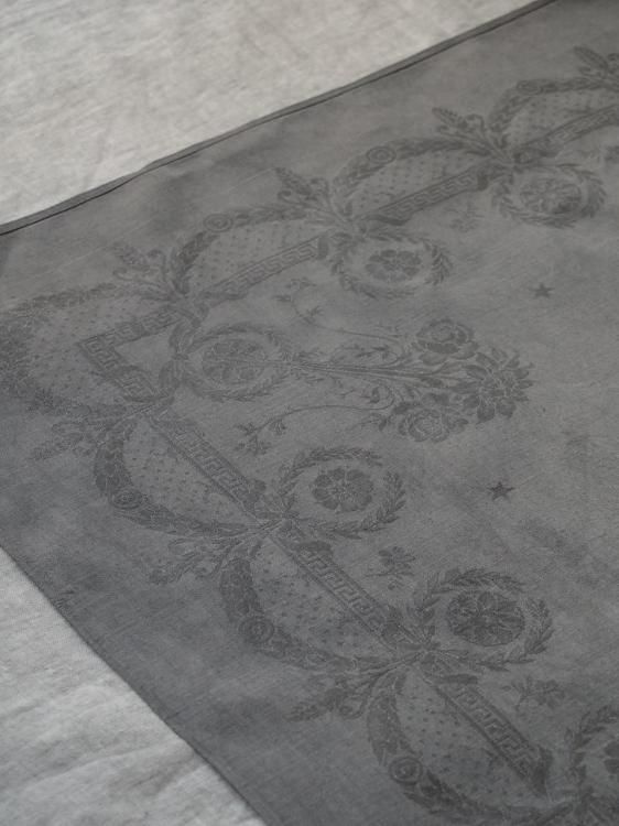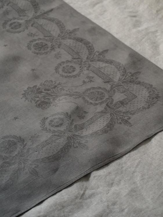 ダマスク織りの柄が見えやすいよう、敢えて光を反射させて撮影しておりますので